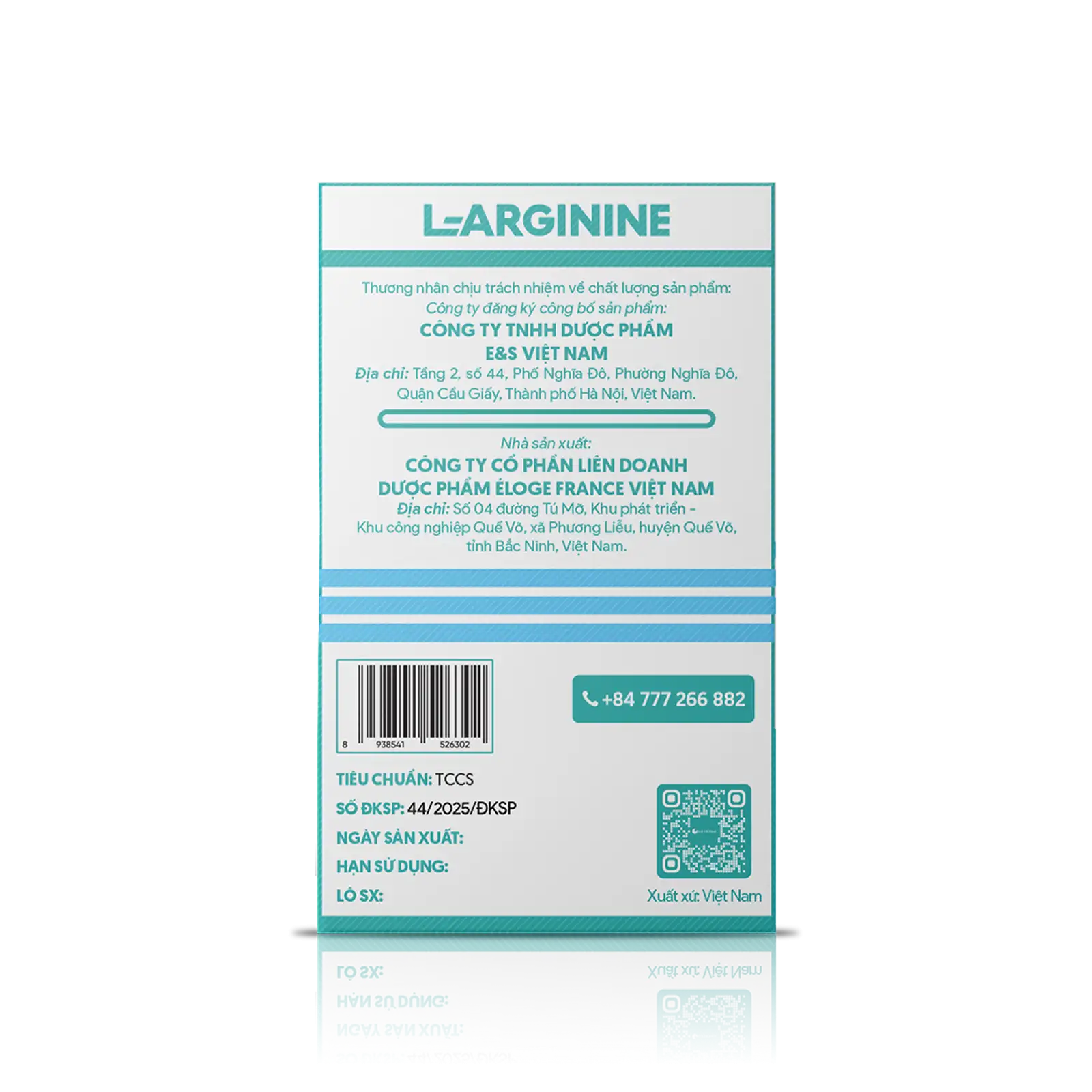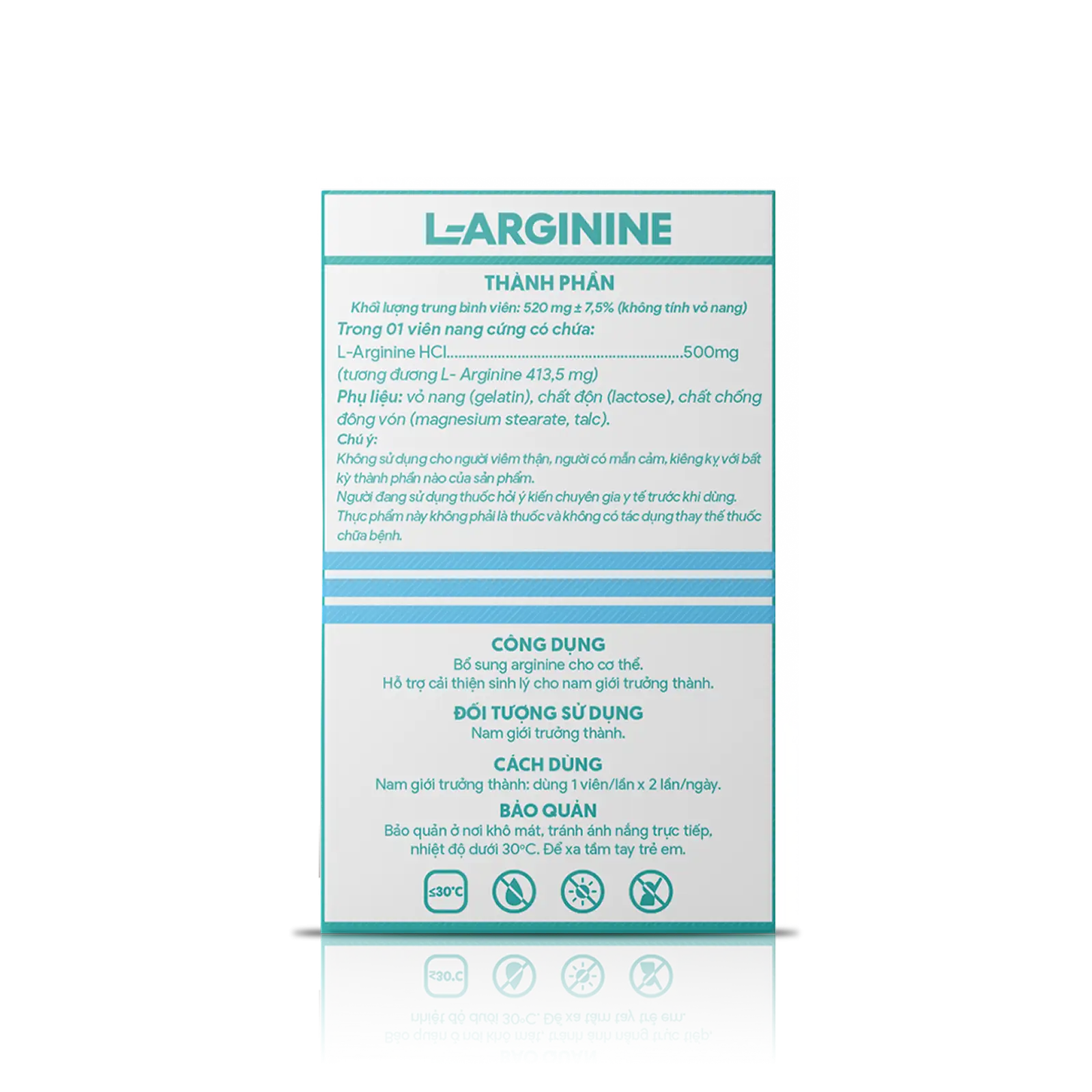 - L-Arginine HCl: 500mg (tương đương L-Arginine 413,5 mg)