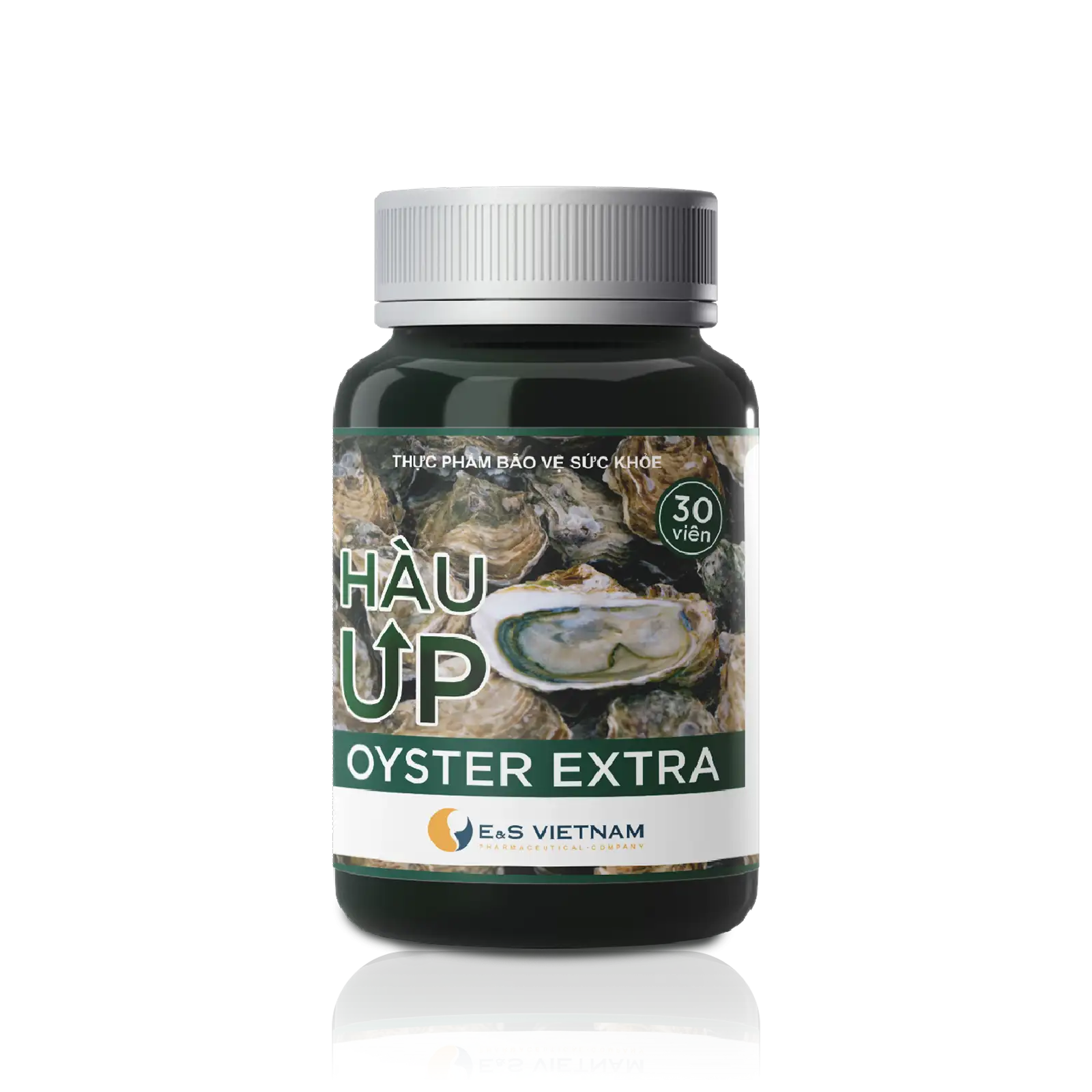 - Hàu UP OYSTER EXTRA giàu kẽm, protein, sắt, các axit amin thiết yếu… chiết xuất từ bột thịt hàu New Zealand tự nhiên, giúp tăng cường sinh lý và khả năng di chuyển, vận động của tinh trùng.